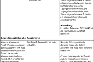 Die Veröffentlichung der novellierten Normenreihe DIN 18040 Teil 1-3 soll – so der derzeitige Stand – mit gleichem Ausgabe-Datum erfolgen. Der für den Hochbau weniger interessante Teil 3 „Öffentlicher Verkehrs- und Freiraum“ ist weitgehend abschließend beraten. Teil 1 „Öffentlich zugängliche Gebäude“ steht kurz vor dem Abschluss. Teil 2 „Wohnungen“ sollte vergleichsweise schnell umsetzbar sein, da ein Großteil der Anforderungen identisch zu denen in Teil 1 ist. Nichtsdestotrotz wird bis zur Aufnahme in die VV TB der jeweiligen Bundesländer noch Zeit verstreichen. Derzeit gelten folgende...