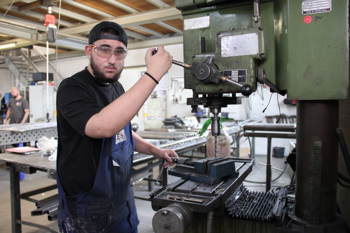 Der Mann mit rundem Gesicht, Vollbart und runder Hornbrille sieht seinen Azubi an der Bohrmaschine stehen. „Setz die Sicherheitsbrille auf! Du weißt doch, das ist zu deiner eigenen Sicherheit“, ermahnt er ihn. Der Firmenrundgang führt weiter nach nebenan in das Lager seines Bruders – eine riesige Halle mit Regalen voller Waren, Kisten – und von dort auf das Werksgelände und in die hintere Ecke zu den Werkstücken. Alle warten sie offensichtlich auf den Abtransport: in Folie gewickelte Metallpfosten und -gitter, Treppenstufen und aufgeständerte Glasscheiben. „Irgendwann hat mein Onkel sein Haus gebaut, und auch er hat Metallarbeiten gebraucht. Da habe ich gedacht, es wäre gut, wenn ich meinen Meister hätte. Also habe ich mit meinem damaligen Chef geredet und ihm von meinem Plan erzählt. Für ihn war das kein Problem, im Gegenteil. Er hat gemeint, dass er mich danach weiter als Werkstattleiter anstellen wird“, schildert der 36-Jährige und inspiziert dabei eine Treppenstufe.