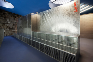 Fitnessstudio Balboa im Viadukt in ZürichCrossFit ist ein neuer Fitnessstudiotrend, der ganzheitlich Ausdauer, Kraft, Schnelligkeit und Körperbeherrschung trainiert. Auf komplizierte Trainingsgeräte verzichtet der Sport. Entsprechend klein können die Studios ausfallen. Die neue Balboa-Filiale in Zürich kommt mit gerade einmal 160 Quadratmetern auf eineinhalb Geschossen aus. Untergebracht sind die Räume im sogenannten „Viadukt", einer historischen Eisenbahnbrücke, deren steinerne Bögen für Einzelhandelsflächen nutzbar gemacht wurden. Die Jury urteilte: "Helsinki Zürich Office übersetzte den rauen Charakter des Sportes in ein authentisches Interieur. Der felsigen Kulisse des Viaduktes wurde nur ein einziges Material gegenübergestellt: feuerverzinkter Stahl. Er dient als Treppe sowie für alle Wandscheiben und Armaturen des Umkleide- und Dusch-Bereiches und wurde nicht nur als eine robuste und pflegeleichte Lösung ausgewählt, sondern viel mehr wegen seines optisch spannenden, energetischen Charakters."