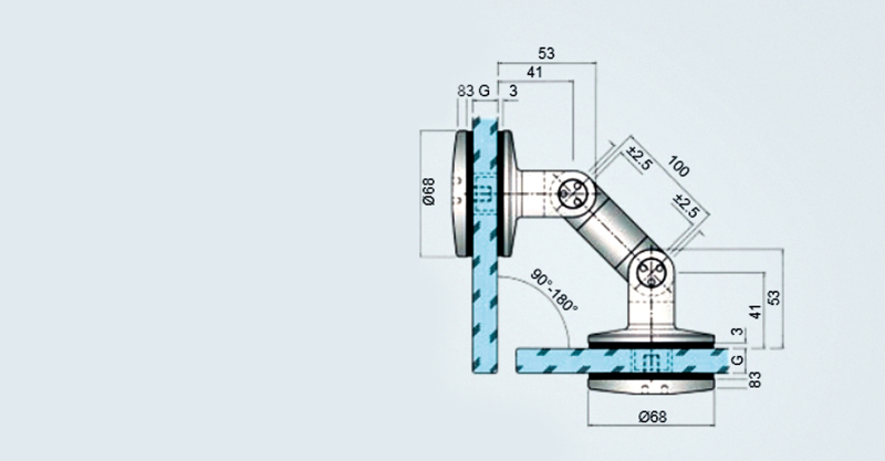 Der Doppelpunkthalter DPHG 68 von Glassline lässt sich zwischen 90° und 180° abwinkeln. Geeignet ist der Gelenkglasverbinder mit zwei zylindrischen Punkthaltern im Durchmesser von 68 mm für eine Glasstärke ab 6 mm. Die Halter sind drehend gelagert, die Oberfläche drehblank mit aufgesetzter Haltescheibe für die Aufnahme von Sonderschlüsseln. Das Anziehmonent der Haltescheibe beträgt 8 N/mm². ⇥red ◊