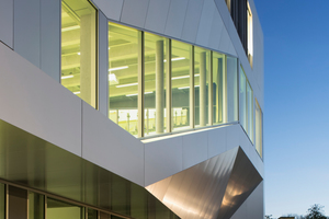 „Mit einer gebauten Schnittfigur, welche das Innenleben dieses Hauses mit seinen unterschiedlichen Raumkonfigurationen abbildet, entwickelt das neue Hörsaalcentrum einen prägnanten, zeichenhaften Auftritt,“ begründete Reiner Nagel in seiner Laudatio die Entscheidung des Preisgerichts. Das Gebäude bildet die neue Mitte des Campus’ Holländischer Platz im innerstädtischen Nordosten von Kassel und beherbergt auf knapp 5.000 Quadratmetern sechs Hörsäle sowie sechs Seminarräume mit rund 2.700 Plätzen. Eine präzise detaillierte Fassade mit reflektierenden Aluminiumtafeln inszeniert die markanten Einschnitte im kompakten Baukörper. Das Team von raumzeit Architekten nahm den Deutschen Fassadenpreis für VHF 2015 gemeinsam mit Vertretern der Universität Kassel entgegen.