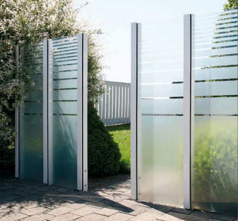 Das Einscheiben-Sicherheitsglas, das Sprinz als Glaszaun anbietet, ist witterungsbeständig und dauerhaft schön. Die Farben der bedruckten Glaselemente sind UV-beständig. Das Gleiche gilt für die Beschläge aus Druckguss, das Klemmprofil und das Pfostensystem aus Aluminium. Streichen ist bei diesen Materialien nicht nötig. In den Glaszaun lässt sich eine Drehtüre einbauen, die Scheiben lassen sich im Digitaldruckverfahren mit Bambusblättern oder Efeu gestalten. Das Pfostensystem besteht aus Pfostenanker, Pfosten zum Überstülpen und Pfostenabschlusskappe. ⇥red ◊