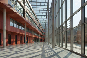 Komplett verschweißte FassadeZur neuen Marburger Universitätsbibliothek führt eine verglaste Passage, deren Dachfläche nach oben gekrümmt ist. Die Tragkonstruktion hat das Fassadenbauunternehmen Roschmann als massiv verschweißten Stahlbau erstellt. Die Scheiben wurden im Structural-Glazing-Verfahren mit dem geschweißten Stahlgitternetz verbunden.
