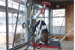 Flexibel einsetzbarEin Glasmontagegerät, das leicht zu transportieren ist und schnell und komfortabel von einem Stock in den anderen befördert werden kann – das waren die Ziele des Unternehmens Uplifter bei der Entwicklung seines Montagegeräts UPT 250. Demontiert kann es im Auto zur Baustelle gebracht werden und, wie der Hersteller schreibt, ohne große Vorkenntnisse innerhalb von zwei Minuten auf- und abgebaut werden. Vormontiert passt das Glasmontagegerät in einen Fahrstuhl hinein. Die Handhabung des Geräts ist rückenschonend; seine Tragkraft beträgt über 150 kg. Besonders eignet sich das Glasmontagegerät für Renovierungen im Altbau, zumal dort der Einsatz eines Krans meist zu teuer ist. Anfragen bezüglich des Zubehörs und individuelle Kundenwünsche werden vom Hersteller gerne entgegengenommen.