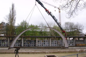 Bei der Montage war die größte Herausforderung der Transport, da sich keine Einfahrt zum Friedhofsgelände als groß genug herausstellte. So musste ein mobiler Kran mit Transportfläche gefunden werden, der auf 30 Metern die 800 Kilogramm heben konnte. Weiter musste für die Montage im See das Wasser abgelassen und später wieder geflutet werden.