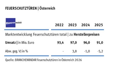 Der österreichische Markt für Feuerschutztüren schrumpfte im Jahr 2025 signifikant, zeigen aktuelle Daten einer Marktstudie des Marktforschungsinstituts BRANCHENRADAR.com Marktanalyse.Der zunehmend...