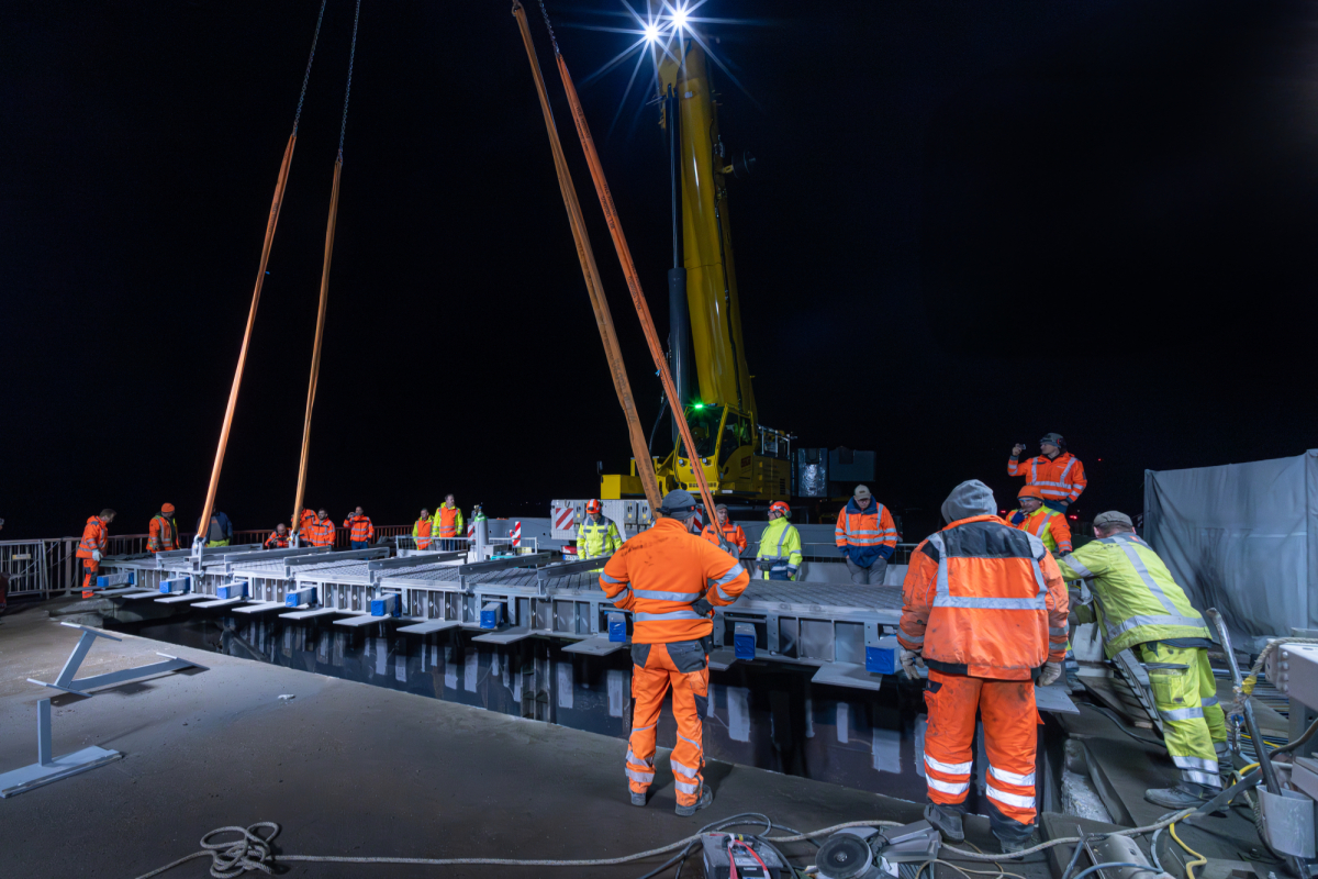 Einbau eines feuerverzinkten Fahrbahnübergangs an der Naabbrücke der BAB 93.