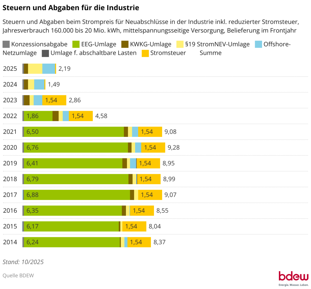 Wie sich Steuern und Abgaben beim Industriestrom zusammensetzen.