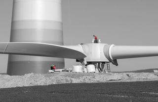 Großformatige Bauteile von Windrädern fordern eine spezielle Oberflächenbearbeitung.