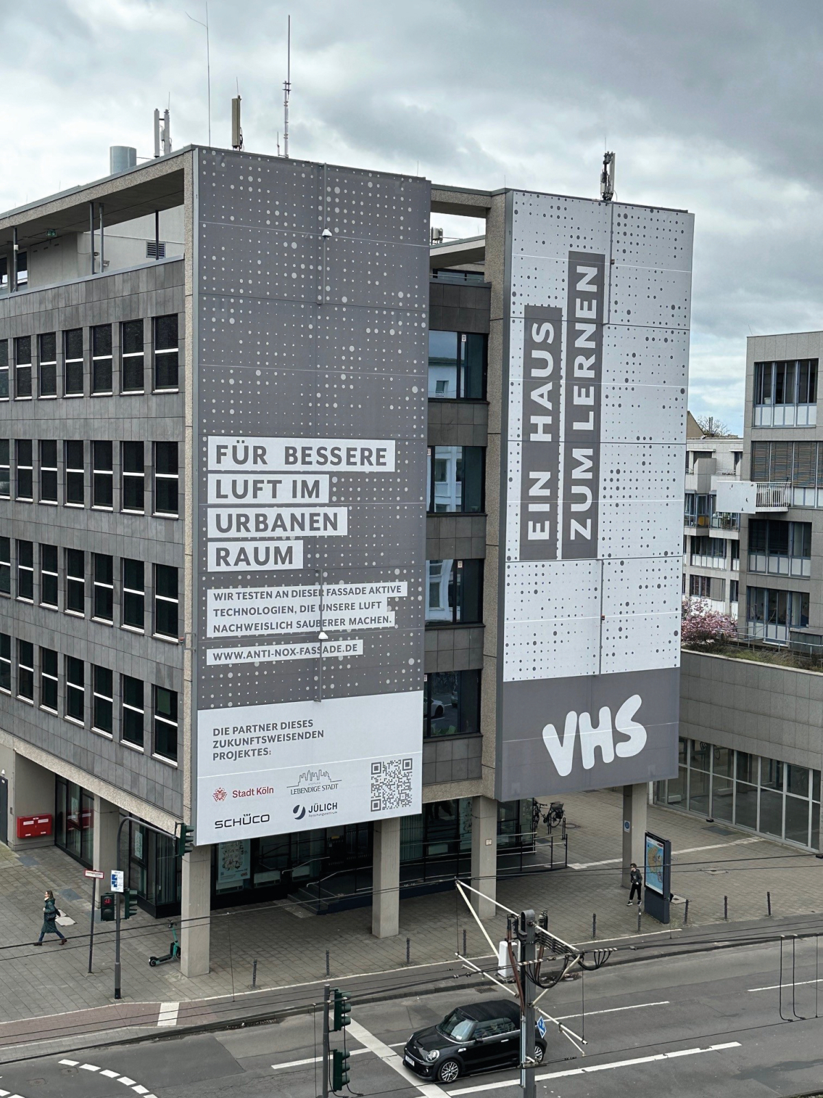 2024 haben die Stadt Köln, die Stiftung „Lebendige Stadt“ und das Unternehmen Schüco mit der photokatalytischen Textilfassade an der Volkshochschule in der Cäcilienstraße in der Kölner Innenstadt ein...